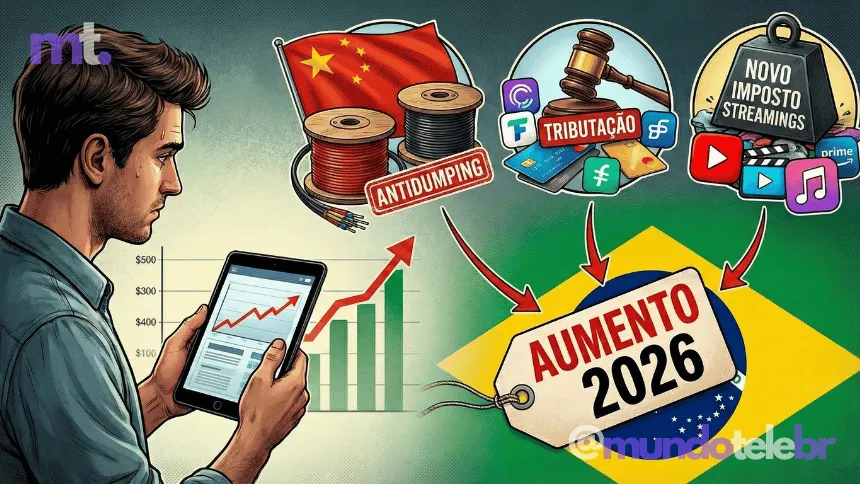 O ano de 2026 começa com grandes mudanças tributárias e de comércio exterior que podem impactar diretamente o orçamento das famílias brasileiras e o custo dos serviços de internet e plataformas digitais. Setores-chave como infraestrutura de telecomunicações, pagamentos digitais e streaming estão no centro de debates e medidas que envolvem tarifas, impostos e novas contribuições. A seguir estão as três frentes que devem elevar custos para consumidores e empresas neste ano.
